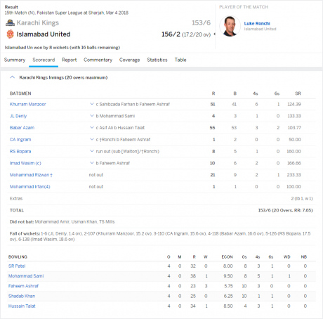 Karachi Kings v Peshawar Zalmi PSL 2018