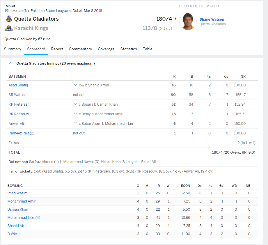 Karachi Kings vs Quetta Gladiators PSL 2018
