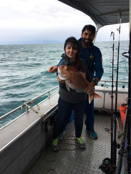 National team players are not missing any moment of enjoyment during tour of New Zealand while the test team captain Misbah ul Haq and batsman Younis Khan enjoyed fishing. On that occasion, Misbah’s wife was also along her and she also took photos with her husband after fishing.