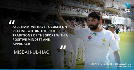 Pakistani test cricket captain, Misbah ul Haq is awarded with ICC Spirit of Cricket Award 2016 and he became the first ever Pakistani player, who is awarded with this beautiful award.