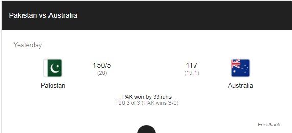 Pakistan vs Australia Match Result
