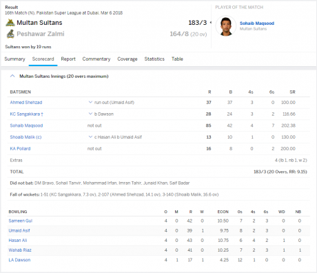 Peshawar Zalmi vs Multan Sultans PSL 3 2018 Live Details