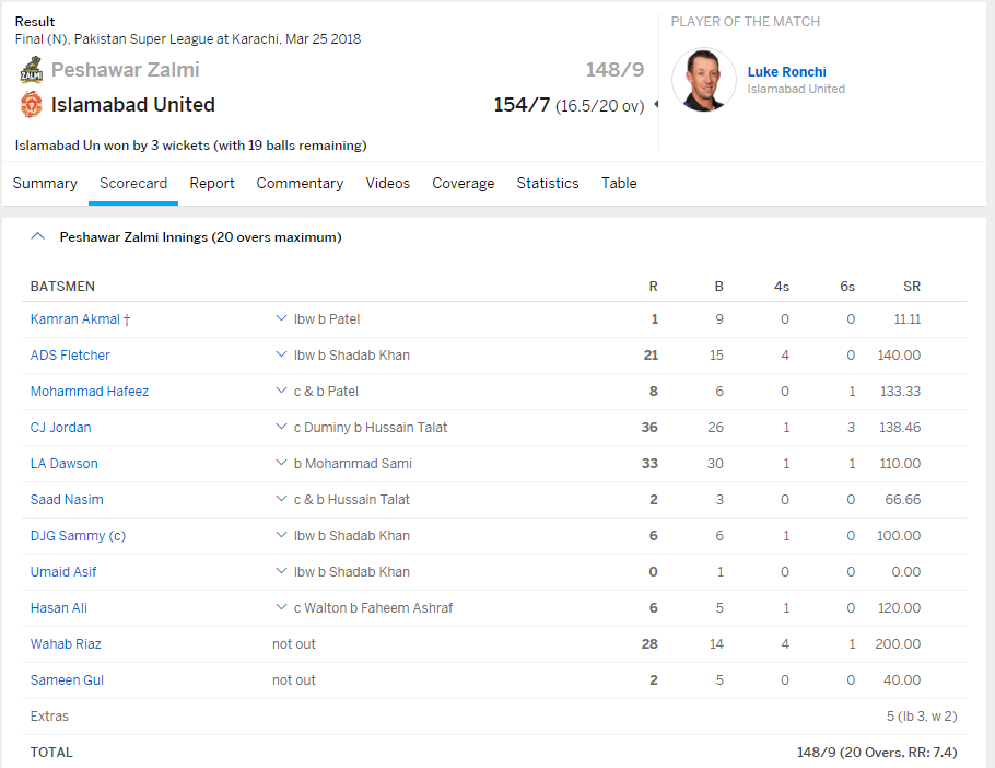 Islamabad United vs Peshawar Zalmi PSL 2018