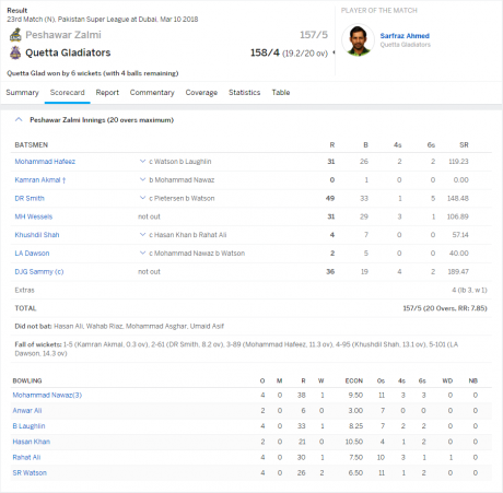 According to the schedule of Pakistan Super League 2018, the fast and important match between Peshawar Zalmi vs Quetta Gladiators will be played on 10 March 2018. The T20 match between the two teams of Quetta Gladiators vs Peshawar Zalmi will be enjoyable and the match between PZ vs QG will be commenced at 1600 GMT, 2100 PKT and 2000 local time. The cricket fans will watch this aggressive match and they will enjoy with interesting moments of the match between Peshawar Zalmi v Quetta Gladiators, which will be televised direct from Dubai Cricket stadium. Viewers will get the enjoyment over the match between Quetta Gladiators v Peshawar Zalmi through live telecast and live score card will also be given on tv screens. The video highlights of aggressive moments of the match of PZ vs QG will be provided online and the cricket fans will be amused with stunning moments of the match of QG vs PZ.